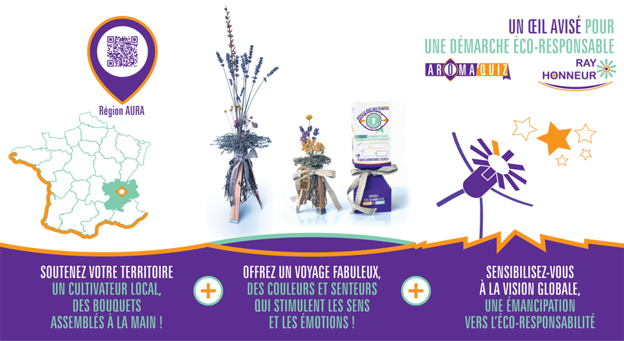 5. Personnalisation - service de conception et impression de bandeau ou carte avec votre logo, message. Conception d’un Aromaquiz spécifique.