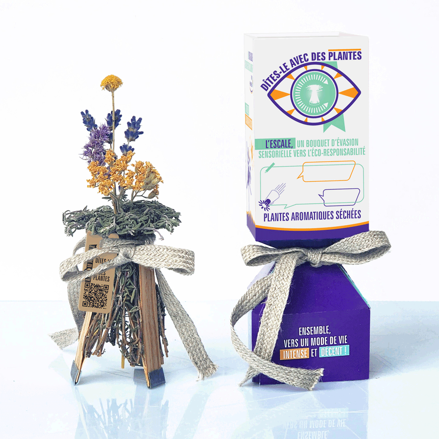 L'ESCALE : Un bouquet de plante aromatique autoportant dans son emballage, dans un format compact, idéal pour sublimer vos tables ou offrir un souvenir original.