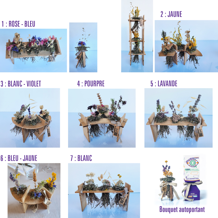 Découvrez notre gamme de présentoirs et nos collections 2025-2026 composées avec les plantes récoltées (liste non exhaustive) : Achillée, Agastache, Bleuet, Forsythia, Hysope, Lavande, Mélisse, Monarde, Origan, Romarin, Santoline, Thym.